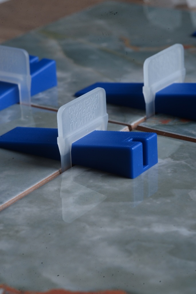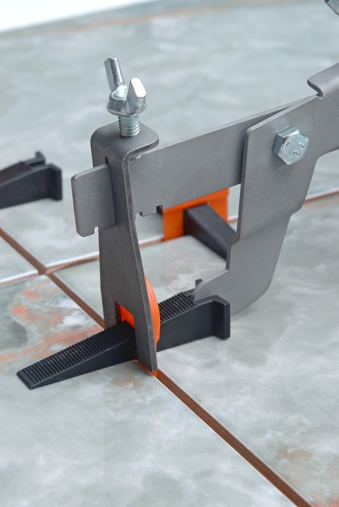 Система предназначена для укладки крупноформатной плитки на пол, плитки формата “паркетная доска” с соотношением сторон 1:4, при укладке плитки со смещением (ёлочкой). Широкий Клин и Клипса «П» образной конструкции с широким основанием позволяет создавать достаточное усилие зажима и последующую прочную фиксацию. Прекрасно вытянет и выровняет в плоскости керамогранит толщиной до 12 мм. Клин изготовлен из высокопрочного пластика, что позволяет использовать его многократно. Система обеспечивает одинаковый размер шва 1,5мм, для других размеров дополнительно применяются крестики. Правильно подобранная ширина Клина и Клипсы позволяет совмещать их с системами других производителей. При работе с большими объёмами или большими размерами плитки рекомендуется применять Зажимное устройство собственного производства.