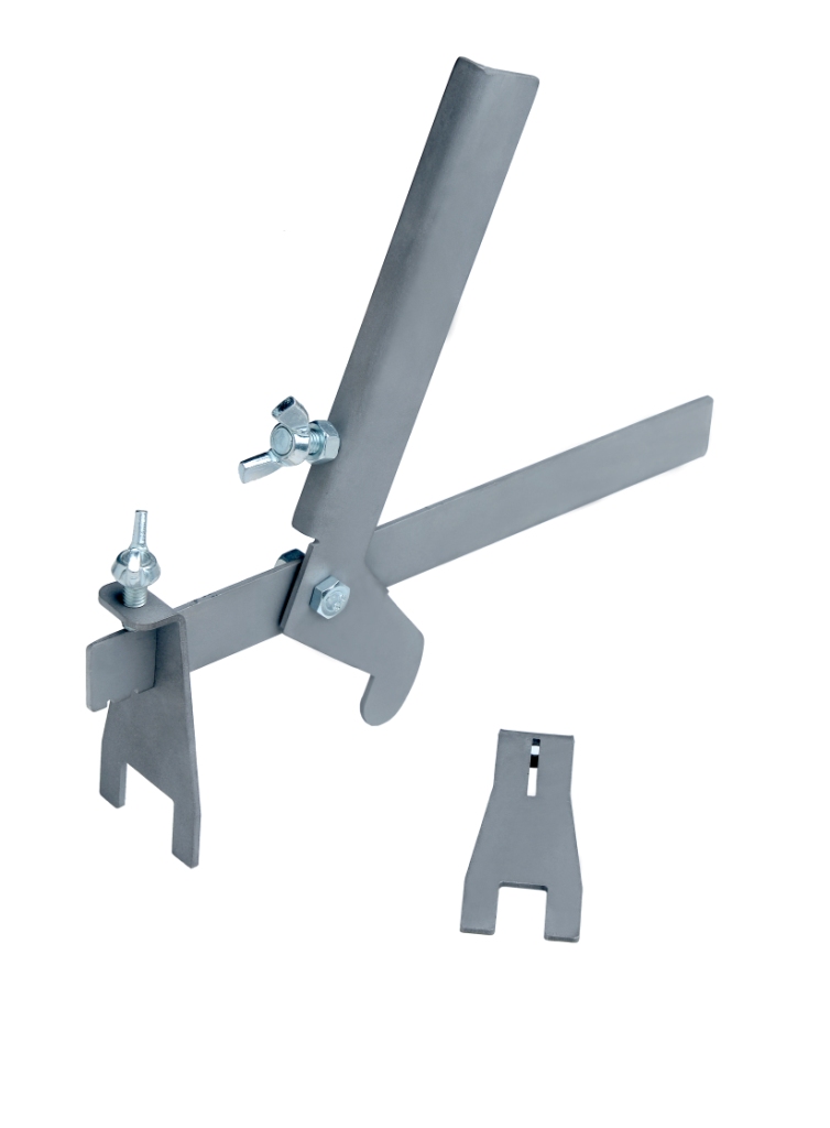 Инструмент для зажимания Клина в Клипсу, сконструирован для облегчения процесса фиксации плиток. В конструкции присутствует фиксатор «глубины» зажимания. Перед работой настраивается в зависимости от размера плитки и обеспечивает ограничение усилия зажатия, что предотвращает отрыв Клипсы в процессе фиксации плиток, а специальный паз у основания Клина предотвращает смещение во время затягивания. Передние ворота изготовлены из закалённой стали для предотвращения их изгиба при длительном использовании. Барашковые винты удобно зажимать при работе в перчатках, рукавицах или мокрыми руками. Зажимное устройство изготовлено из нержавеющей стали, легко очищается от плиточного клея, не боится воды, ударов при падении.