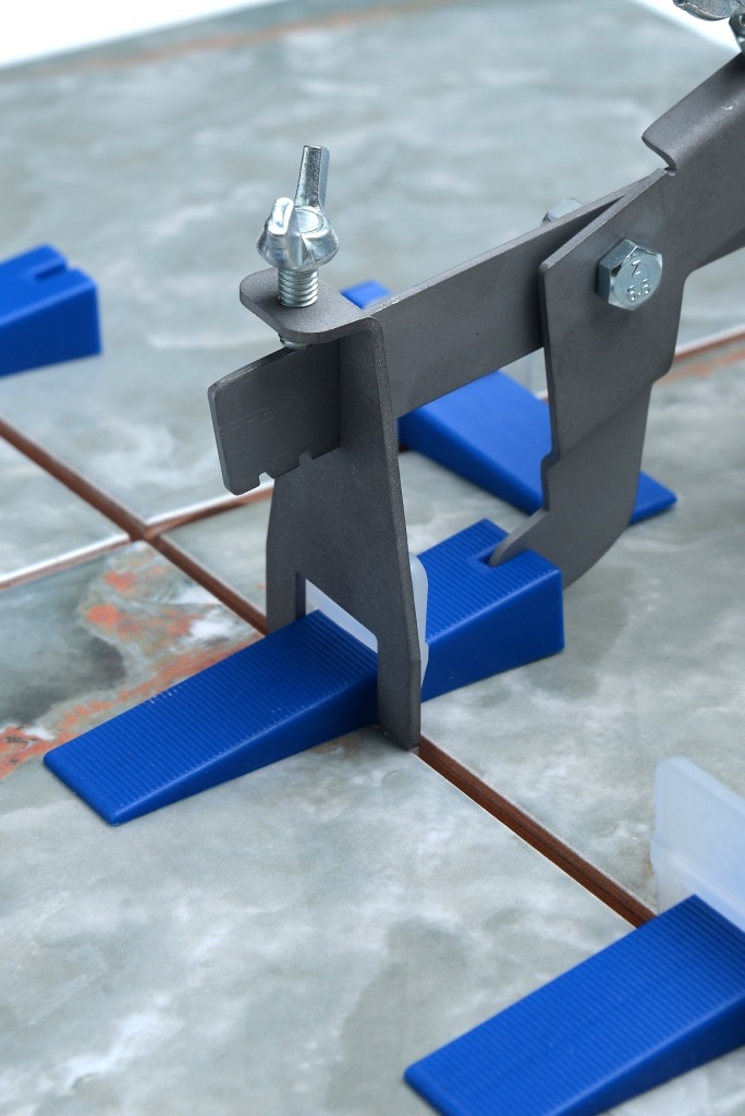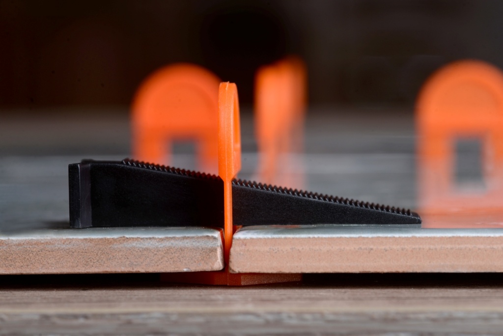 Система предназначена для укладки крупноформатной плитки на пол, плитки формата “паркетная доска” с соотношением сторон 1:4, при укладке плитки со смещением (ёлочкой). Широкий Клин и Клипса «П» образной конструкции с широким основанием позволяет создавать достаточное усилие зажима и последующую прочную фиксацию. Прекрасно вытянет и выровняет в плоскости керамогранит толщиной до 12 мм. Клин изготовлен из высокопрочного пластика, что позволяет использовать его многократно. Система обеспечивает одинаковый размер шва 1,5мм, для других размеров дополнительно применяются крестики. Правильно подобранная ширина Клина и Клипсы позволяет совмещать их с системами других производителей. При работе с большими объёмами или большими размерами плитки рекомендуется применять Зажимное устройство собственного производства.
