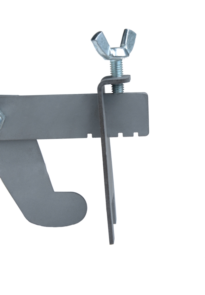 Инструмент для зажимания Клина в Клипсу, сконструирован для облегчения процесса фиксации плиток. В конструкции присутствует фиксатор «глубины» зажимания. Перед работой настраивается в зависимости от размера плитки и обеспечивает ограничение усилия зажатия, что предотвращает отрыв Клипсы в процессе фиксации плиток, а специальный паз у основания Клина предотвращает смещение во время затягивания. Передние ворота изготовлены из закалённой стали для предотвращения их изгиба при длительном использовании. Барашковые винты удобно зажимать при работе в перчатках, рукавицах или мокрыми руками. Зажимное устройство изготовлено из нержавеющей стали, легко очищается от плиточного клея, не боится воды, ударов при падении.